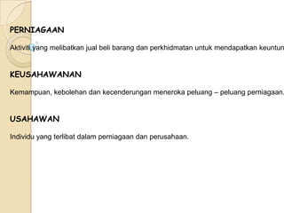3 Ekonomi Malaysia pada. Pengenalan Kepada Perniagaan Minggu ini kita telah selesai belajar BAB 1. KHB TING 2 - Bab 8 Perniagaan Dan Keusahawanan.